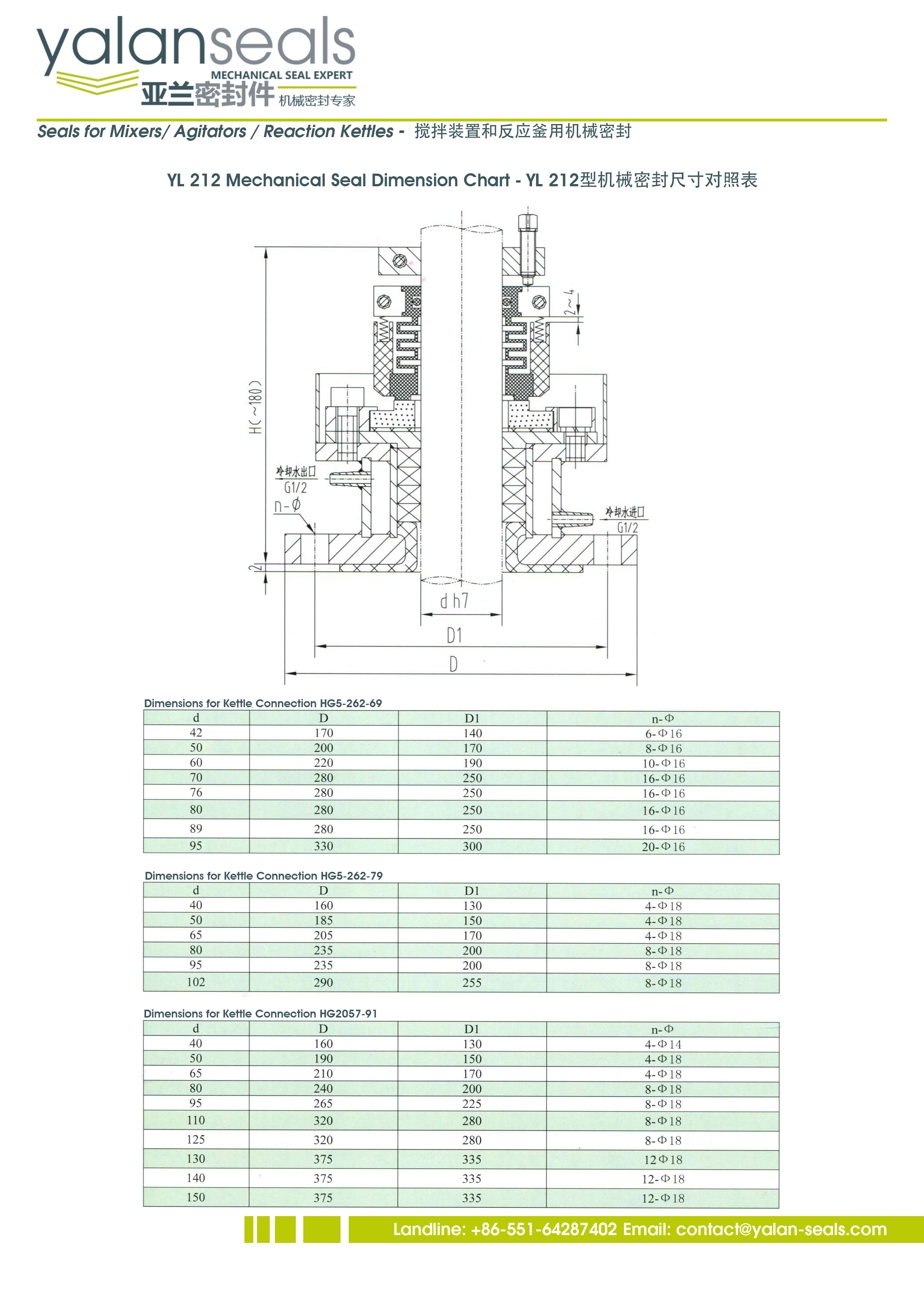 亞蘭212型機械密封件,用于搪瓷反應釜和真空設備。