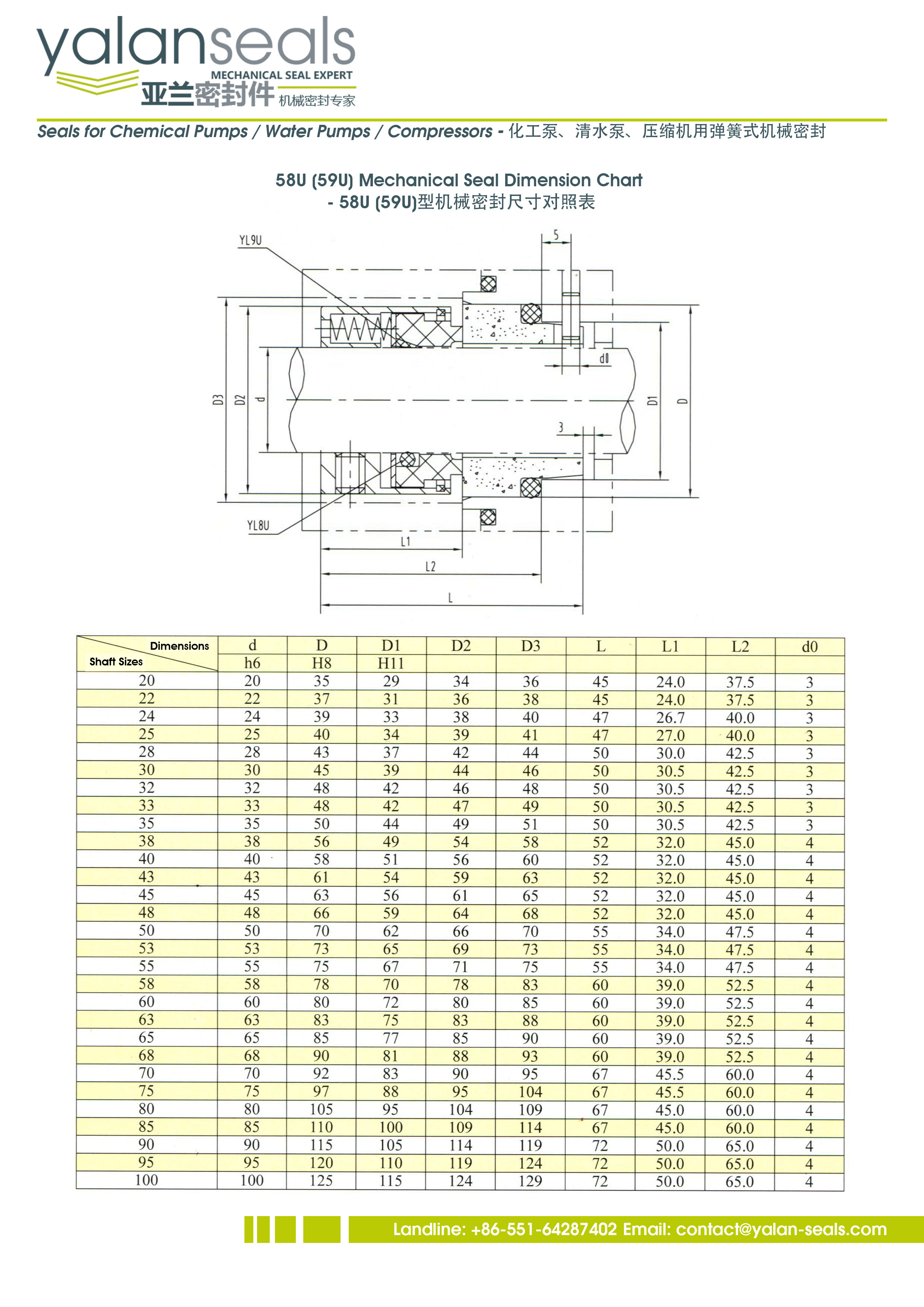 亞蘭58U,58B,59B和59U機械密封,用于化工離心泵、真空泵、壓縮機和反應釜等旋轉設備。
