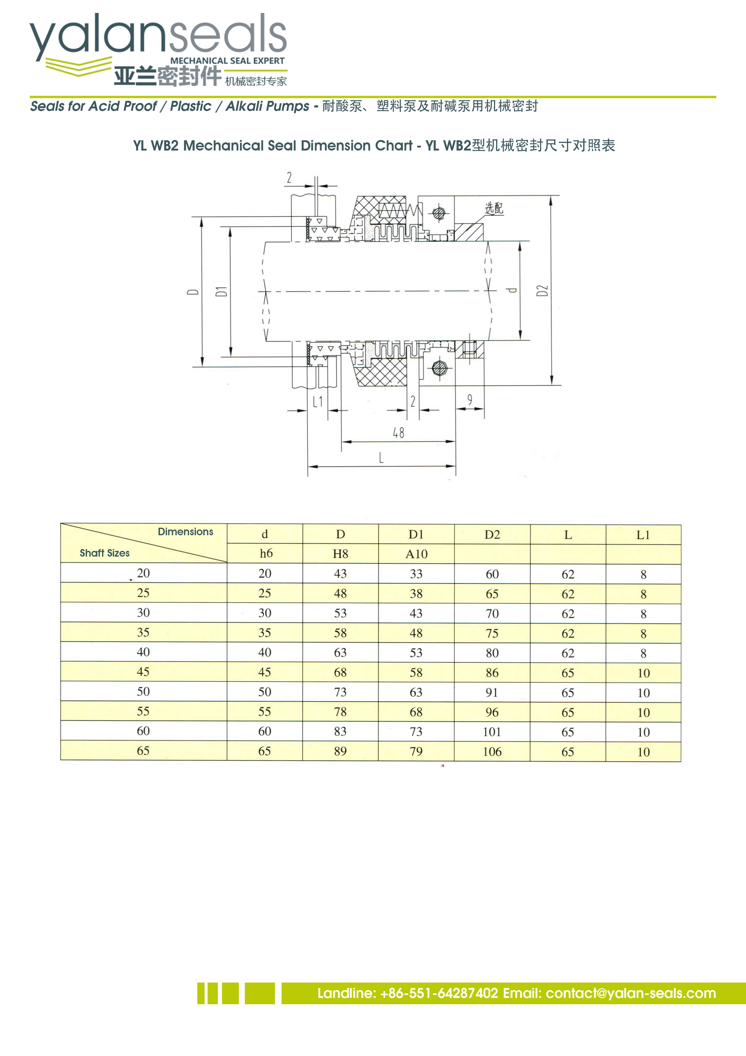 亞蘭WB2型(152型)聚四氟乙烯波紋管機械密封件,用于耐酸泵、塑料泵、堿泵和真空設備